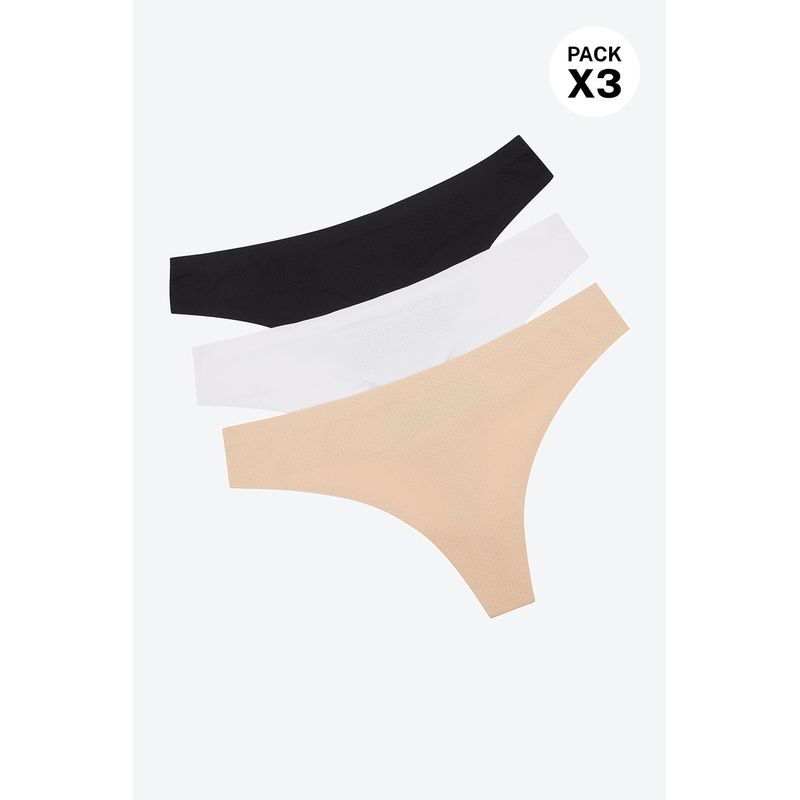 Este pack de panties tipo brasilera ofrece un balance entre sensualidad y comodidad. Su diseño sin costuras, junto con una textura microperforada que mejora la transpiración, lo convierte en una prenda ideal para el uso diario, incluso en climas cálidos o rutinas activas.