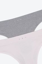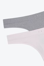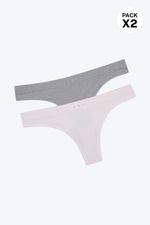 Panty tipo brasilera que brinda cobertura leve en las piernas y los gluteos. En en paqueteria x2 con tecnología seamless, es decir que no cuenta con costuras en el contorno, lo que genera mayor confort y evita que la prenda se enrolle sobre la piel o genere marcas, elaborado en poliamida, un material resistente y elastico. Con refuerzo en algodón que brinda mayor higiene y frescura en la zona intima. Con una textura acanalada que aporta un toque innovador y en tendencia.