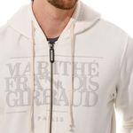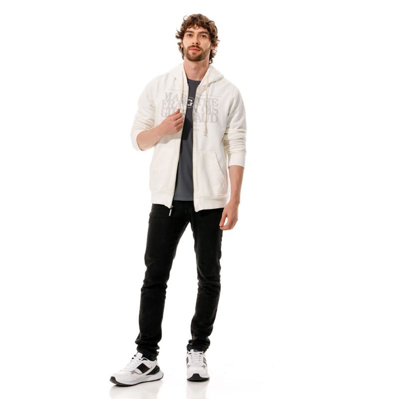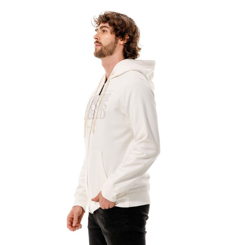 Buzo con capucha ajustable con cordones y manga larga acabada en puño elástico.Cierre frontal con haladera contramarcada. Confeccionado en 100% algodón de 270gr. Bolsillo canguro en frente. Estampado en frente.