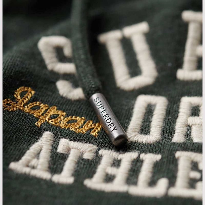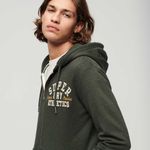 Apuesta por el estilo estadounidense con esta sudadera con capucha. Sus gráficos bordados, inspirados en la emblemática cultura retro, la convierten en la prenda perfecta para inyectar un aire de estilo vintage a tu fondo de armario informal. El forro sin cepillar hace, además, que se trate de una opción de gran ligereza, ideal para combinar con otras prendas de abrigo. Corte entallado: un diseño que se ajusta más al cuerpo para lucir un look a medida, Capucha con cordón de ajuste, Cierre de cremallera, Logotipo bordado, Dos bolsillos delanteros, Puños y dobladillo de canalé, Forro sin cepillar, Etiqueta de Superdry, Emblema inspirado en el deporte universitario.