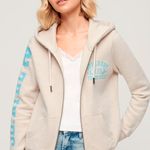 Tanto si lo tuyo es ver los deportes desde las gradas como salir con los colegas, esta sudadera es el toque final que tu look necesita. Suave, práctica, versátil y cómoda, utilízala sobre una camiseta clásica o para abrigarte bien debajo de un abrigo cuando bajen las temperaturas. Seguro que te sentirás genial y lucirás aún mejor. Corte relajado: el corte clásico de Superdry. Una prenda ni muy estrecha ni muy holgada, simplemente perfecta. Elige tu talla habitual, Diseño clásico con cremallera integral, Capucha forrada con cordón de ajuste, Manga larga, Dos bolsillos delanteros, Puños y bajo de canalé, Forro cepillado, Estampado con efecto agrietado en el pecho, Estampado en la manga con efecto agrietado, Etiqueta con el logotipo en la costura lateral, Detalles metálicos con el logotipo de la marca.