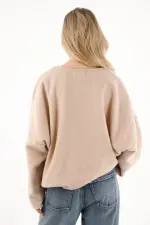 Confeccionado en tela suave con textura afelpada, tiene cuello redondo, puños amplios y un fit holgado que aporta comodidad sin perder estructura visual.