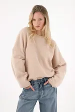 Su color latte aporta una vibra cálida y moderna que combina con jeans, pantalones amplios o incluso faldas para un contraste único. La silueta amplia con manga caída crea un efecto relajado y envolvente, ideal para layering con chaquetas protagonistas de la cápsula.