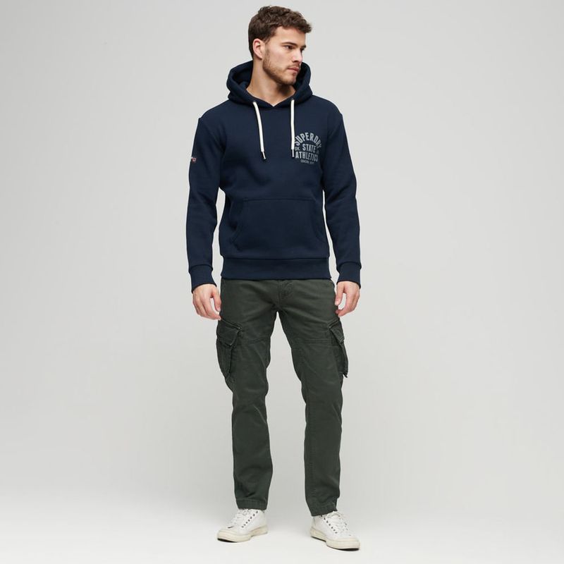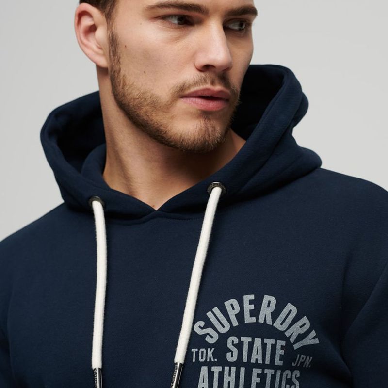 La sudadera con capucha Athletic Script Flock es una forma elegante de renovar los básicos de tu armario. Una prenda perfecta para los días informales que puedes combinar con vaqueros y zapatillas deportivas, aportando un toque deportivo a tu estilo personal. Esta sudadera con capucha, diseñada con gráficos inspirados en los clásicos motivos estadounidenses, es una forma emblemática de aportar un sutil toque retro a tu look. Corte relajado: el corte clásico de Superdry. Una prenda ni muy estrecha ni muy holgada, simplemente perfecta. Elige tu talla habitual, Capucha con cordón de ajuste, Puños y bajo de canalé, Amplio bolsillo delantero, Estampados de Superdry gráficos en la partes delantera y trasera, Parche con el logotipo de Superdry.