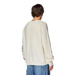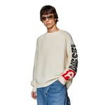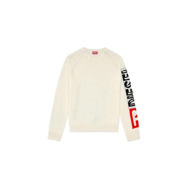 Este jersey de lana para hombre de fit holgado cuenta con un dobladillo de longitud regular que muestra el icónico logotipo de Diesel en la parte delantera. La manga izquierda presenta una aplicación grande del logotipo cortada a mano, lo que crea un efecto desgastado único para cada prenda. Los ribetes destruidos completan el look. • Composición: 100%Lana • País Origen: China • El modelo viste una talla L y mide 182 cm