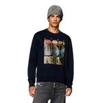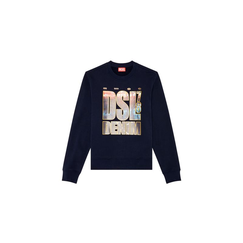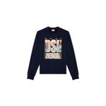 Buzo Cerrado Para Hombre S-Ginn-L3 Diesel. Sudadera de cuello redondo para hombre de fit regular. Este modelo está hecho de tejido de algodón bouclé y presenta un estampado fotográfico dentro de las letras gruesas del logotipo. • Composición: 100%Algodón, Elástico 97%Algodón 3%Elastano • País Origen: La India • El modelo viste una talla L y mide 182 cm