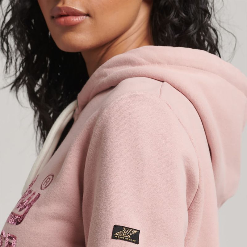 Esta sudadera es una prenda clásica que hemos reinventado a fin de ofrecerte un diseño único. Muestra tu lado creativo con el logotipo adornado que aporta una nueva vida a esta pieza. Con su forro sin cepillar, esta sudadera es una opción de abrigo ligera, por lo que es ideal para combinar con otras prendas cuando hace frío sin tener que sacrificar un ápice de comodidad. Corte relajado: el corte clásico de Superdry. Una prenda ni muy estrecha ni muy holgada, simplemente perfecta. Elige tu talla habitual, Capucha con cordón de ajuste, Logotipo metalizado estampado, Amplio bolsillo delantero, Puños y bajo de canalé, Forro sin cepillar, Insignia de Superdry.