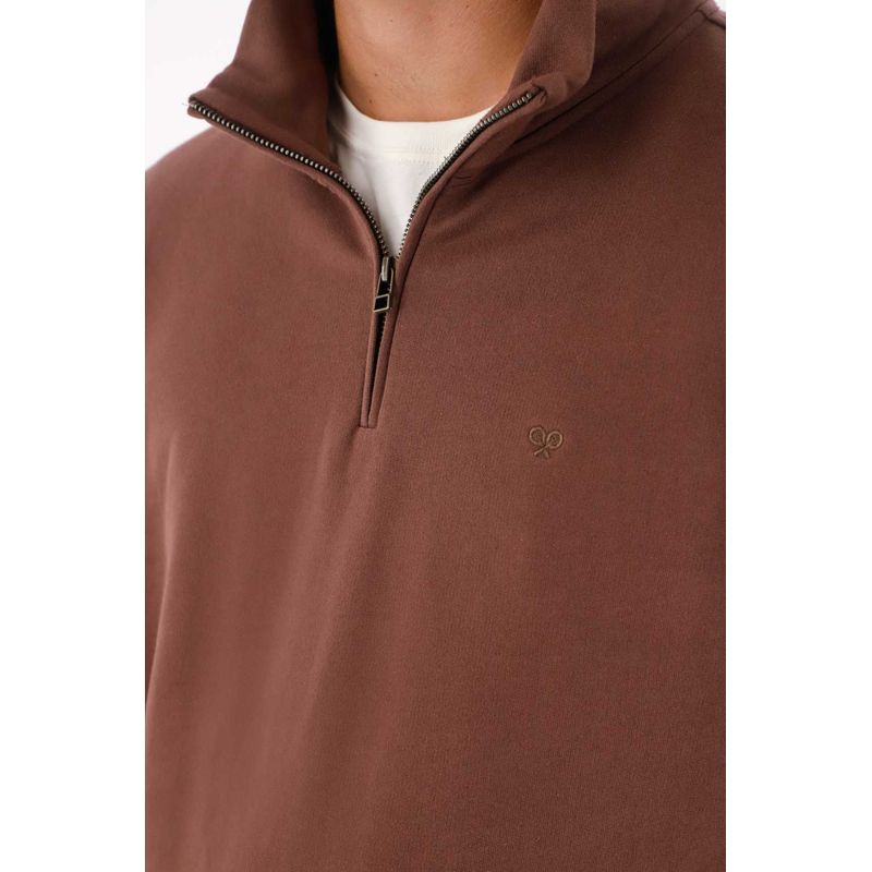 Los puños y fajón en rib aseguran un ajuste perfecto que mantiene la estructura del buzo, mientras que la mini raqueta bordada en punto corazón, en tono a tono, añade un detalle sutil y distintivo que refuerza ese aire deportivo y moderno de marca.