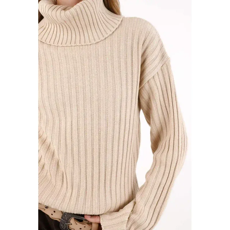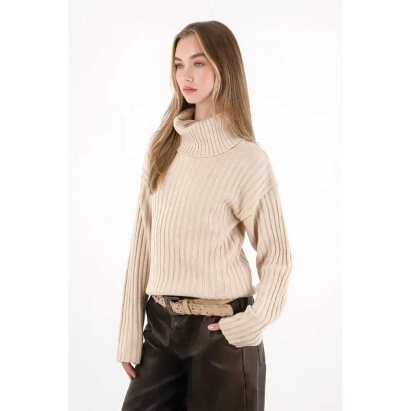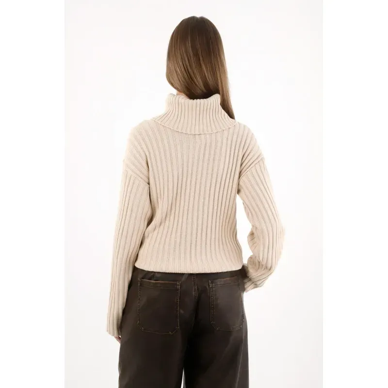 Cálido, elegante y con un aire minimalista irresistible: así es este buzo. Su color crudo, protagonista de la temporada, aporta profundidad y vibra otoñal a cualquier look. El cuello tortuga enmarca el rostro con sofisticación, mientras la textura acanalada estiliza y suma dimensión. Va increíble con denim oscuro, pantalones rectos o bajo un blazer oversized.