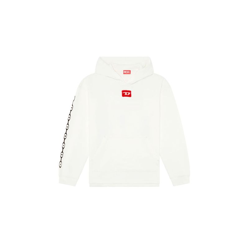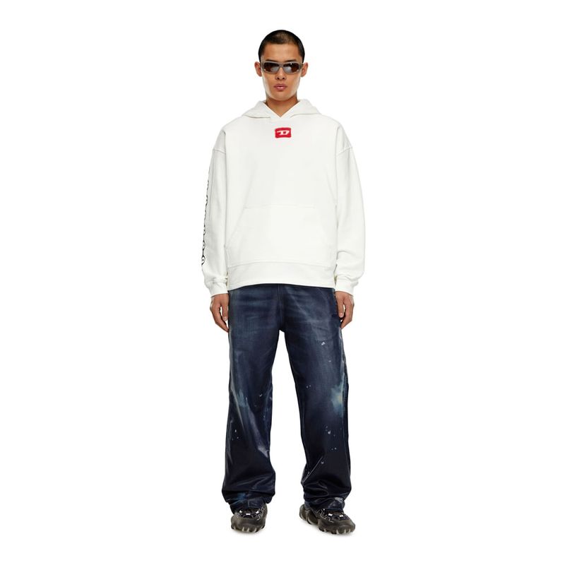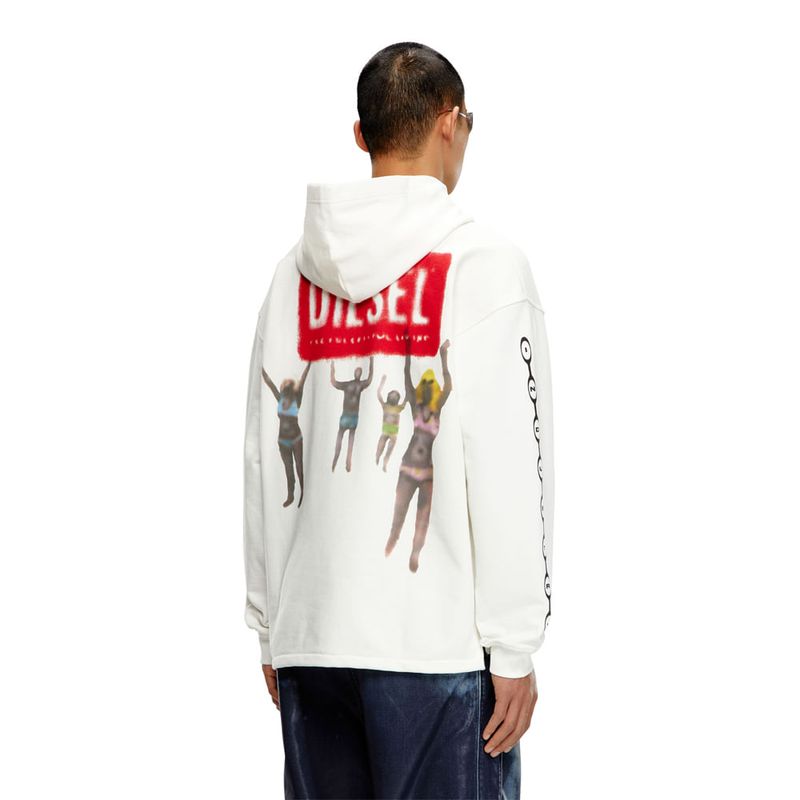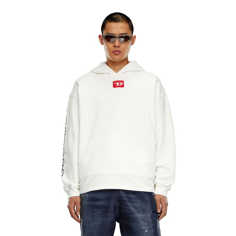 Buzo hoodie cerrado para hombre s-baxt-hood-n1. esta Sudadera de fit relaxed para hombre cuenta con un estampado digital con las animaciones de aerografía, con un aspecto desteñido especial. diseñada con capucha y pequeñas aberturas laterales, está confeccionada en tejido de algodón bouclé, y adornada con un logotipo d rojo y el icónico logotipo for successful living en la espalda.