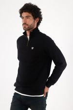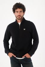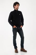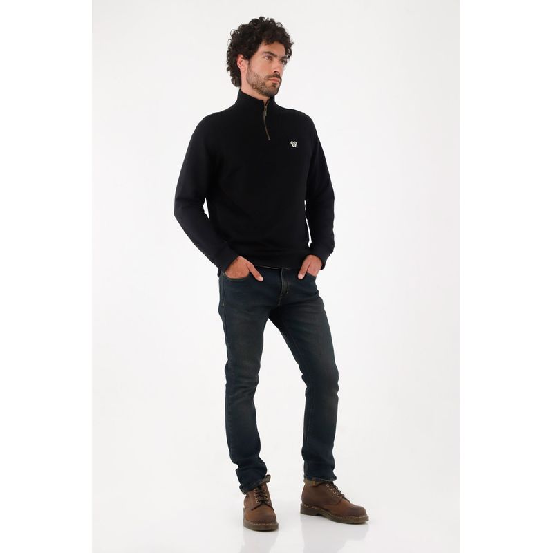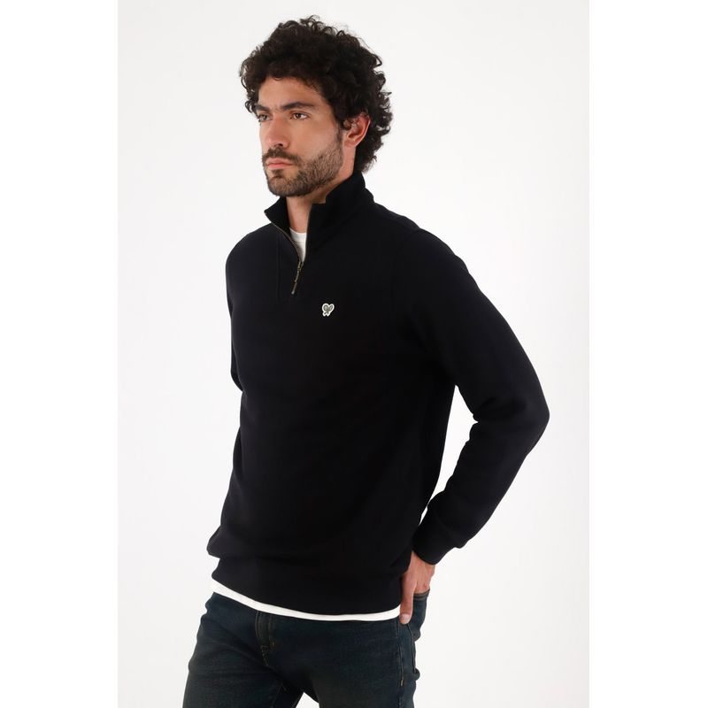 Fit & Styling Calce regular que cae recto y favorece. Llévalo semiabierto sobre una camiseta blanca asomando en cuello y bajo, con jeans oscuros; sube levemente los puños para un gesto urbano. Un buzo media cremallera hombre pensado para moverse entre trabajo y after con estilo.