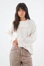 Fit & Styling Silueta suelta y relajada. Llévalo semimetido al frente con un jean recto en tonos tierra o índigo claro para equilibrar proporciones, y juega con el cuello desplegado o ligeramente doblado según el mood. Un buzo de punto para mujer pensado para la rutina urbana y planes casuales.