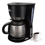 Cuenta con jarra en acero inoxidable, durable e irrompible con mango que no se calienta. Con capacidad de 10 tazas de 110 ml cada una, indicador de nivel de agua y sensor de temperatura el cual permite que se apague automáticamente si la temperatura es muy alta.