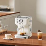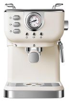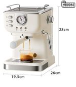 Cafetera espresso de estilo retro diseñada para quienes buscan calidad profesional en cada taza. Su potente bomba de 20 bar garantiza una extracción intensa y precisa, resaltando el aroma y cuerpo del café. El manómetro frontal permite monitorear la temperatura ideal durante la preparación. Incluye vaporizador para espumar leche y crear bebidas como cappuccinos y lattes. Su estructura con detalles metálicos ofrece durabilidad y una apariencia elegante para cualquier cocina u oficina.