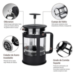 Disfruta de una experiencia de café auténtico y artesanal con esta prensa francesa de diseño clásico y funcional. Ideal para quienes buscan un método de preparación más puro y aromático, esta cafetera permite extraer el máximo sabor del café molido sin necesidad de filtros ni electricidad. Su diseño compacto la hace perfecta para el hogar, la oficina o incluso para llevar de viaje.