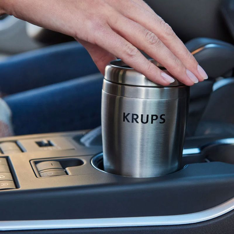 Vaso Krups de acero inoxidable doble pared con capacidad de 12 onzas.
