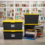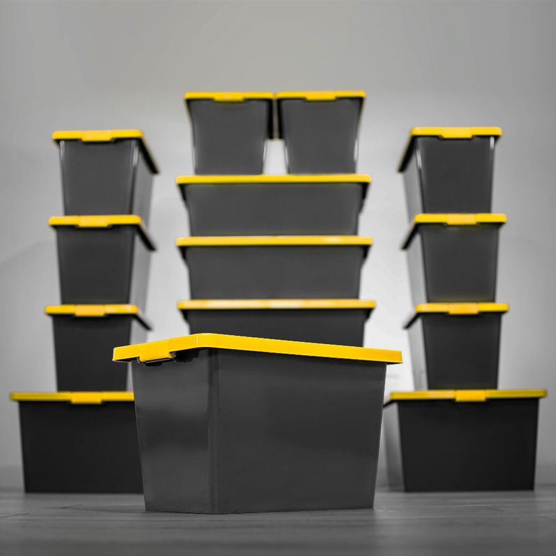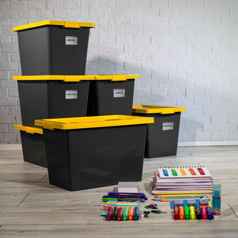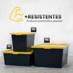 Caja organizadora de 55L con broches de cierre tipo clic y tapa permitiendo que todos tus objetos sean protegidos y almacenados en un solo lugar dando orden a todos los espacios en tu casa y/o oficina. Etiqueta de marcación borrable* para identificar fácilmente los elementos guardados, tamaños ideales para uso en cuartos útiles, closets, talleres, cuarto de linos, cuartos de san alejo. producto ideal para tráfico pesado, alta resistencia al impacto. 20% más resistente**
