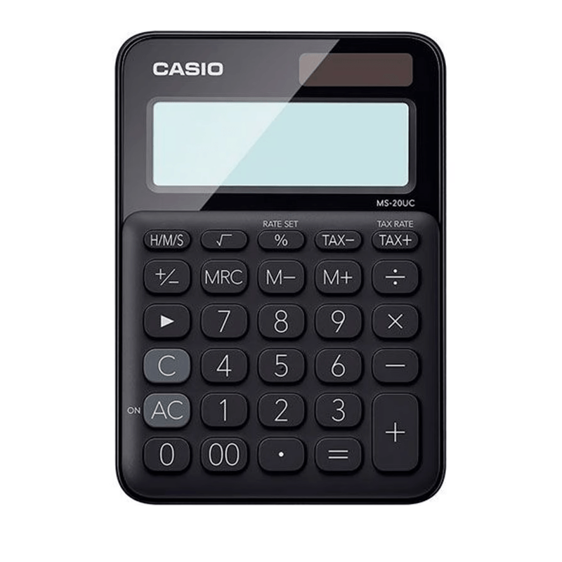 • Calculadora básica de 12 dígitos • Pulsación simultánea de teclas • Pantalla extra grande • Teclas plásticas • Fuente de alimentación: batería / energía solar •Cálculo de impuesto: Cálculo y resultado automática del precio más el impuesto, precio menos el impuesto, descuento, precio de venta, importe de impuesto, importe de descuento e importe de margen de ganancia. Cálculo de tiempo: El cálculo de tiempo le permite ingresar y calcular fácilmente los valores en hora, minutos y segundos.