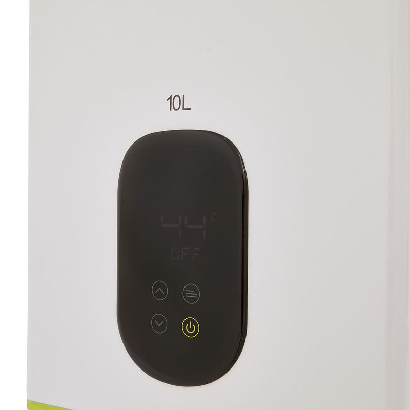 Calentador modulante a gas natural de 10 litros Tiro Forzado, ideal para uso de diversas salidas de agua. Cuenta con tecnología que ajusta automáticamente el suministro de aire y gas para mantener la temperatura del agua según tu preferencia, independientemente de las variaciones del flujo; Con lo cual obtienes mayor confort y generas ahorro al no tener que regular manualmente la ducha. Puedes programar la temperatura en un rango de 35 °C a 65 ° usando los botones de la pantalla LED y no tienes que preocuparte por hacerlo cada mañana, ya que cuenta con función de memoria para recordar la última temperatura programada. Además, en su panel digital puedes ver indicadores de funcionamiento, temperatura programada y códigos de error en caso que se presenten.