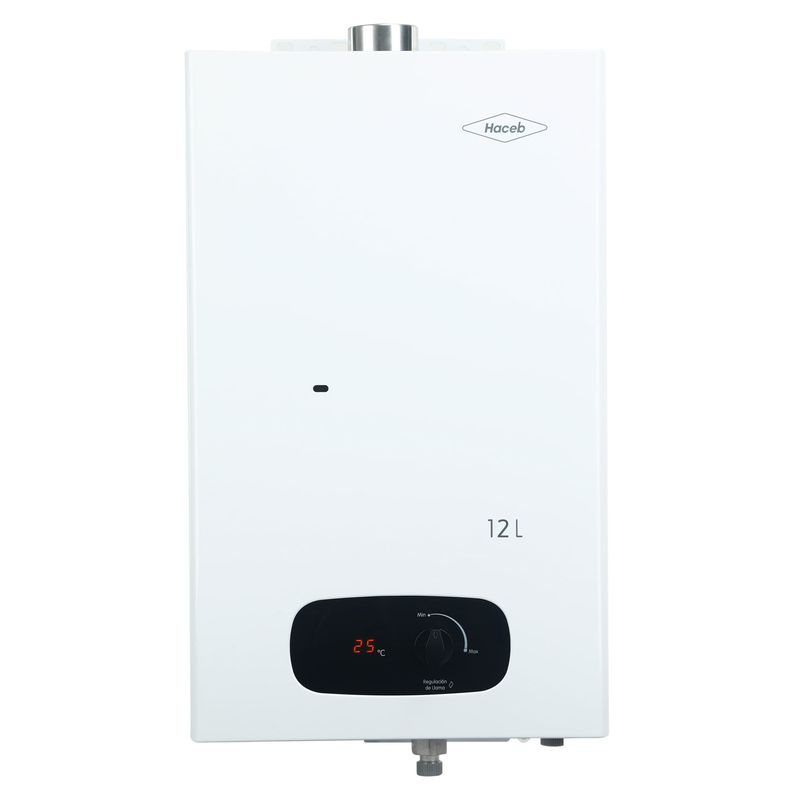 Calentador de paso a gas natural 12 litros Tiro Forzado, ideal para uso de diversas salidas de agua. Incluye ducto de evacuación, se enciende de manera automática con solo abrir la llave y puedes ajustar la temperatura del agua facilmente girando las manijas de control de flujo de agua y de gas. Gracias a su diseño delgado, tamaño compacto y apariencia moderna podrás tener el confort y estilo en tu hogar. Con intercambiador 100% cobre lo que se traduce en mayor eficiencia, vida útil y confiabilidad del equipo.