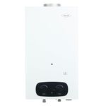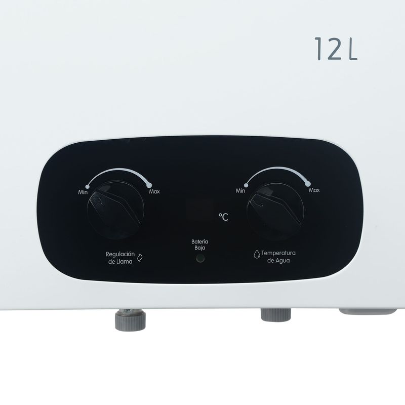 Calentador de paso a gas natural 12 litros Tiro Natural, ideal para uso de diversas salidas de agua. Se enciende de manera automática con solo abrir la llave y puedes ajustar la temperatura del agua facilmente girando las manijas de control de flujo de agua y de gas. Gracias a su diseño delgado, tamaño compacto y apariencia moderna podrás tener el confort y estilo en tu hogar. Con intercambiador 100% cobre lo que se traduce en mayor eficiencia, vida útil y confiabilidad del equipo.