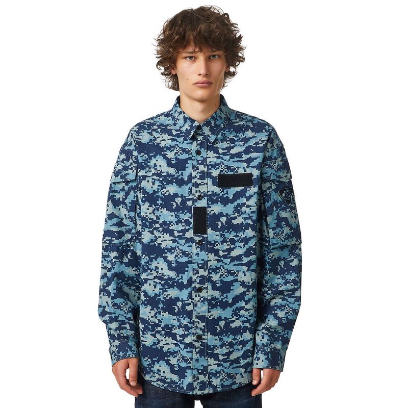 Diesel es una innovadora marca internacional de estilo de vida que produce una amplia colección de jeans, ropa y accesorios. Somos pioneros en denim y con el pasar de los años nos convertimos en una marca de ropa casual premium, siendo una verdadera alternativa en el mercado de lujo establecido. Somos una marca que representa la pasión, la individualidad y la autoexpresión. El Mundo DIESEL te espera. Esta camisa está confeccionada en ripstop lavado con un estampado de camuflaje pixelado. De corte regular, tiene detalles de parches con velcro y bolsillos en las mangas, uno de los cuales tiene el motivo del logotipo bordado. 100%Algodón País Origen: China El modelo viste una talla L y mide 182 cm