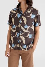 COAST para hombre, es una camisa playera con botones e ideal para cualquier ocasión informal. Este diseño de color café con estampado de flores y hojas grandes multicolor, te dará un look moderno tanto para la playa como para la ciudad.