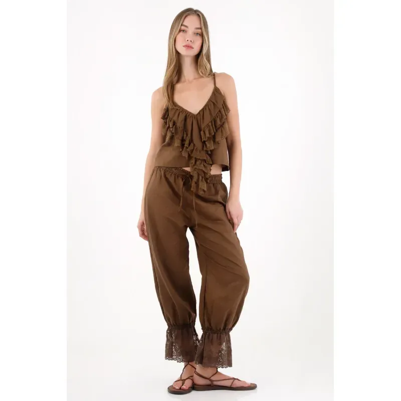 Inspirada en el encanto natural del boho chic, esta pieza celebra la ligereza y la textura. Los boleros en blonda evocan un estilo delicado y femenino, mientras las tiras y el diseño etéreo la convierten en una prenda perfecta para combinar con denim claro o faldas fluidas.
