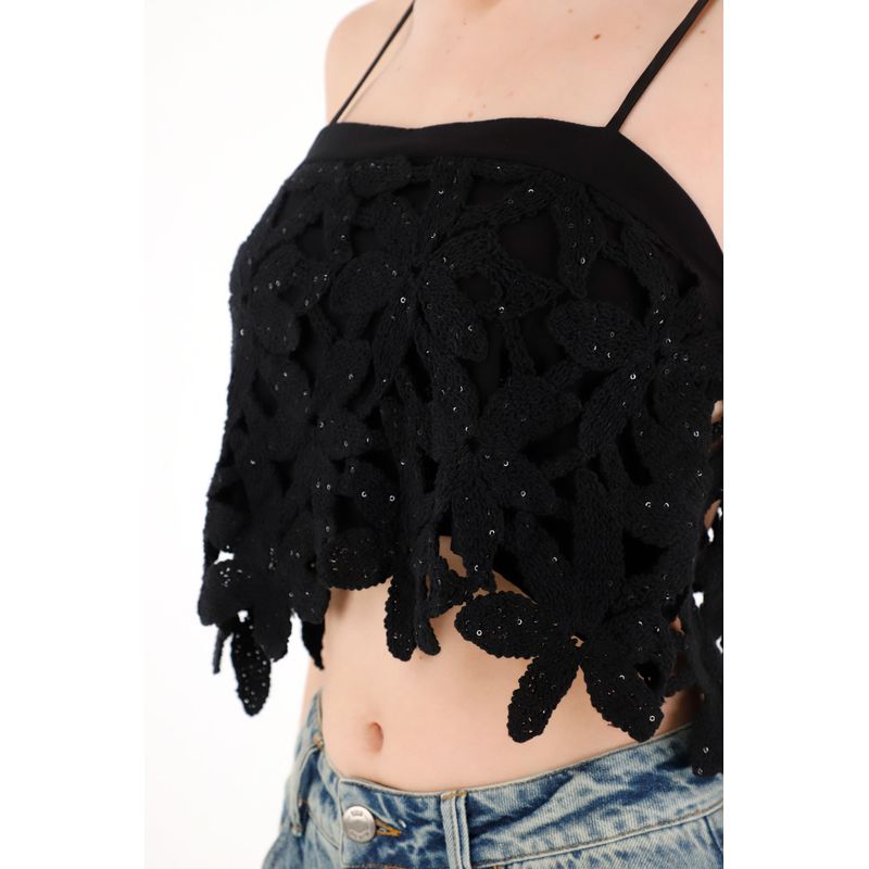¡Un toque romántico y fresco! Esta camisa tipo crop se luce con su bordado floral que la hace un must del clóset femenino.