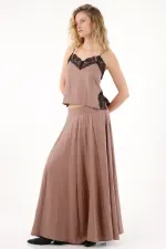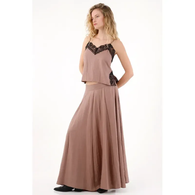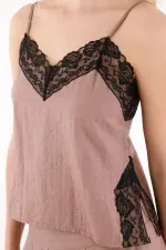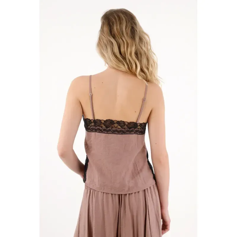 Confeccionada en tela ligera y confortable y diseñada con tiras graduables, escote en V con encaje y aberturas en costados que aportan detalle y frescura a la prenda.