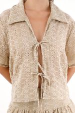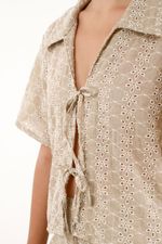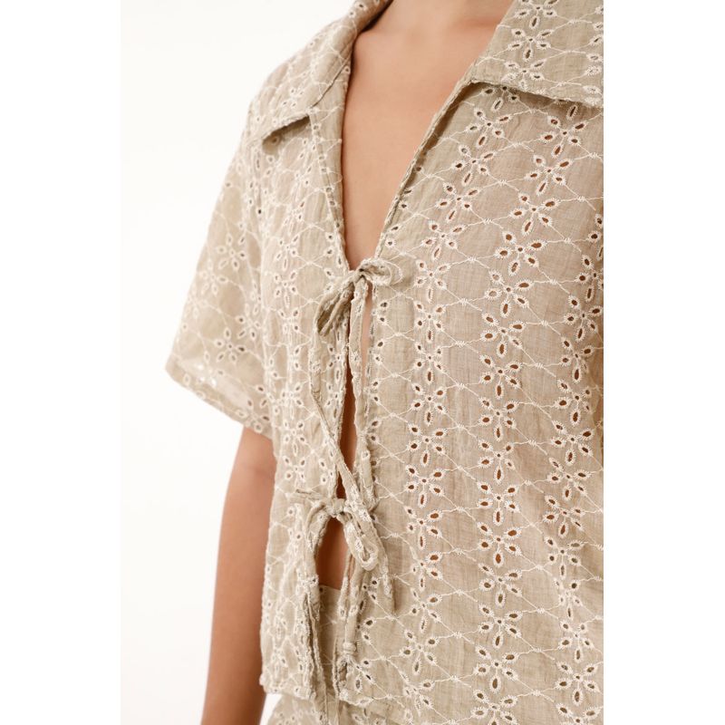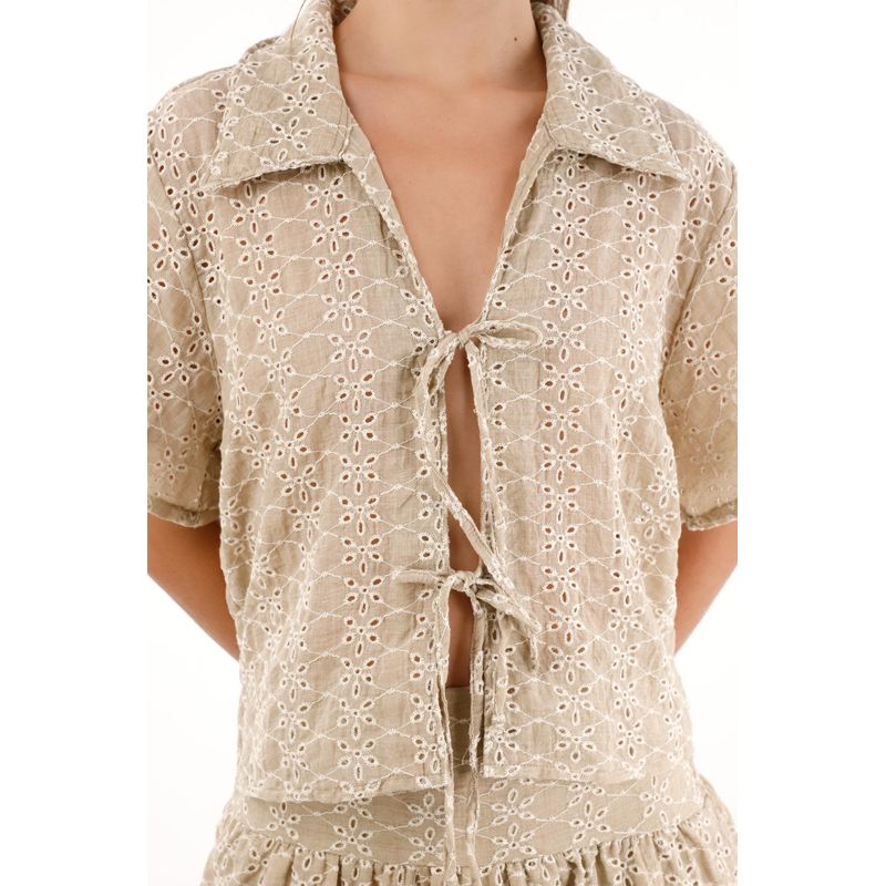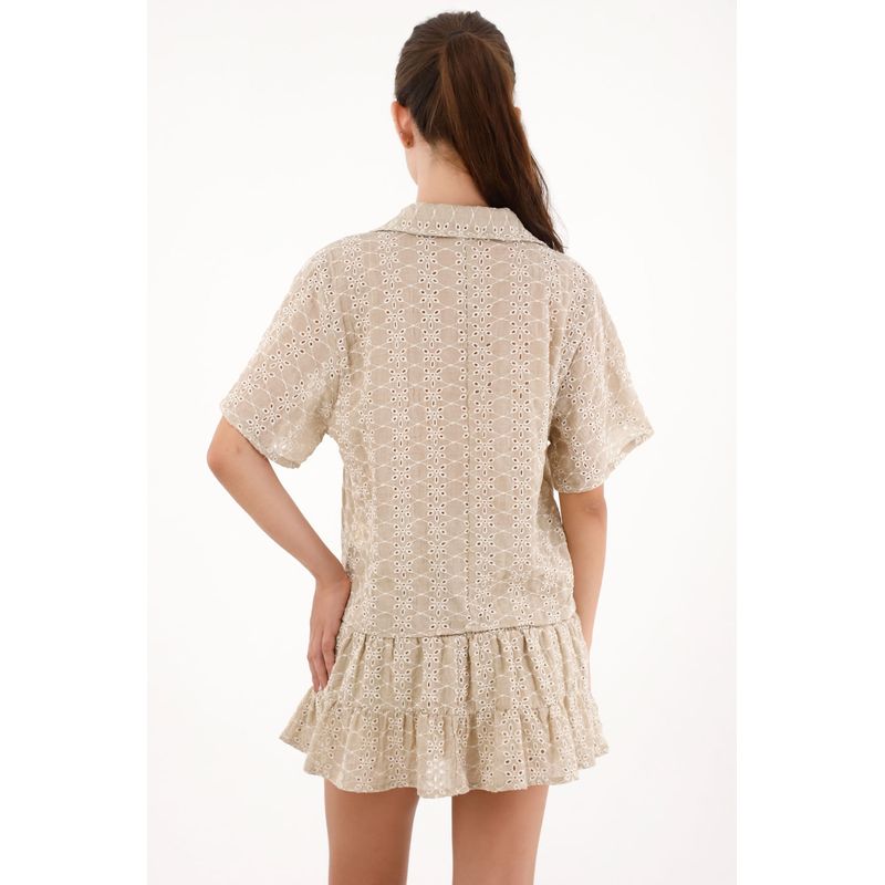 ¡Romántica, fresca y con mil posibilidades! Esta camisa en tela ojalillo tiene una silueta fluida que la hace tan versátil como encantadora.