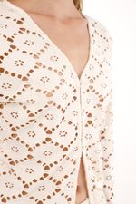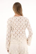 Su silueta cómoda y el tejido de punto con detalles desagujados le dan un aire ligero y femenino, perfecto para un look fresco y delicado.