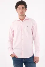 Rosa limpio con un guiño de identidad. Una camisa de manga larga TNS pensada para el ritmo urbano: el fit clásico cae recto y favorece sin esfuerzo, mientras el logo bordado a contraste en el pecho suma personalidad sin gritar. El algodón 100% aporta ese tacto natural que se siente auténtico y la botonadura al tono mantiene el frente pulcro; el dobladillo redondeado te da libertad para llevarla como prefieras.