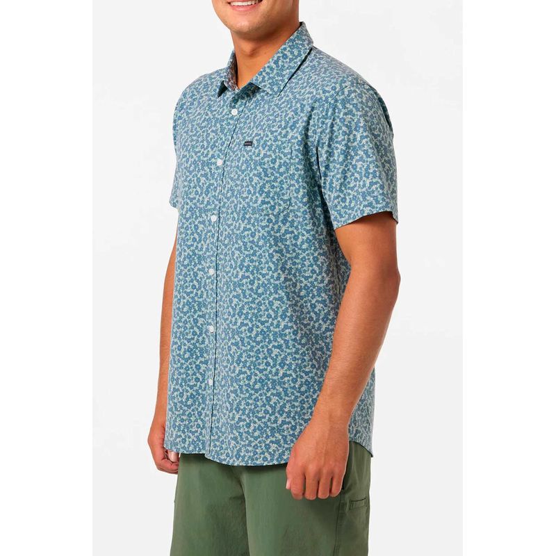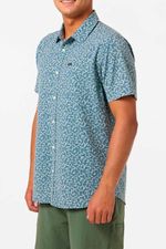 Una Camisa manga corta de secado rápido con diseño de flores verde y azul con silueta amplia y bolsillo delantero que brinda un aspecto playero y relajada en una prenda cómoda y versátil para cualquier ocasión.