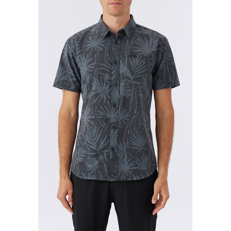 Camisa manga corta oscura con estampado playero, silueta classic fit y bolsillo delantero que brinda un aspecto moderno y estilizado en una prenda cómoda y versátil para cualquier ocasión.