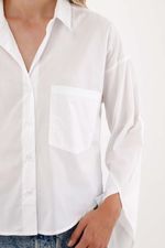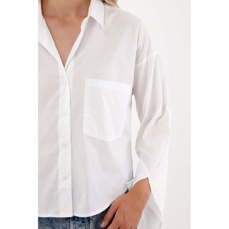 Confeccionada en popelina ligera, con manga larga, puños en pico y cuello clásico. Ruedo curvo que permite un ajuste fluido sobre cualquier prenda inferior.