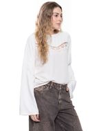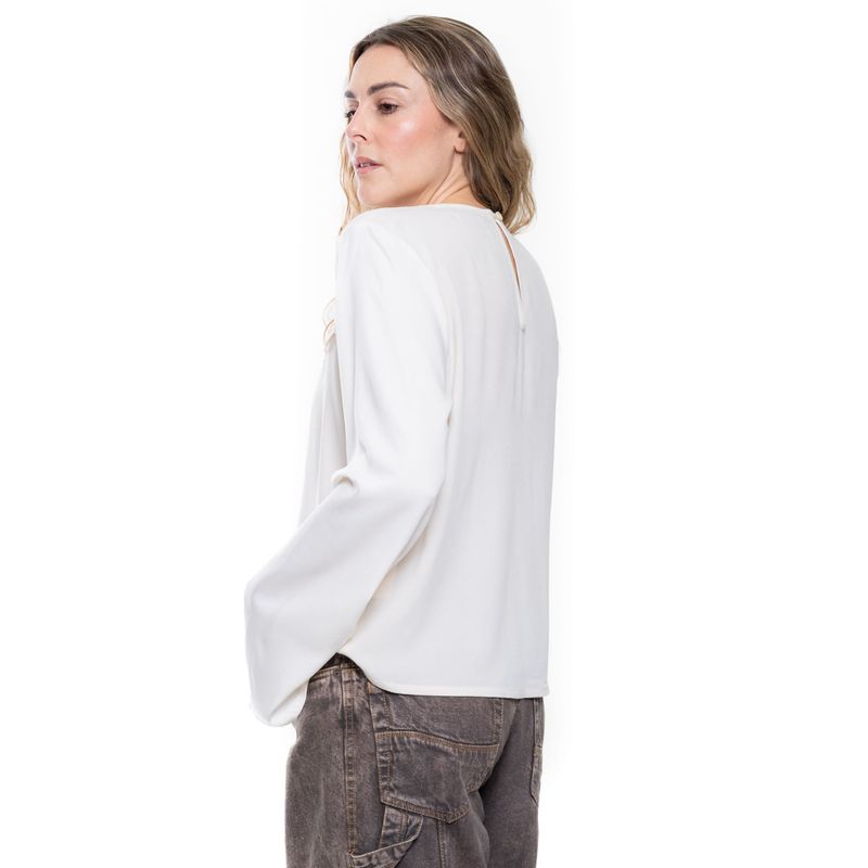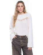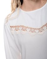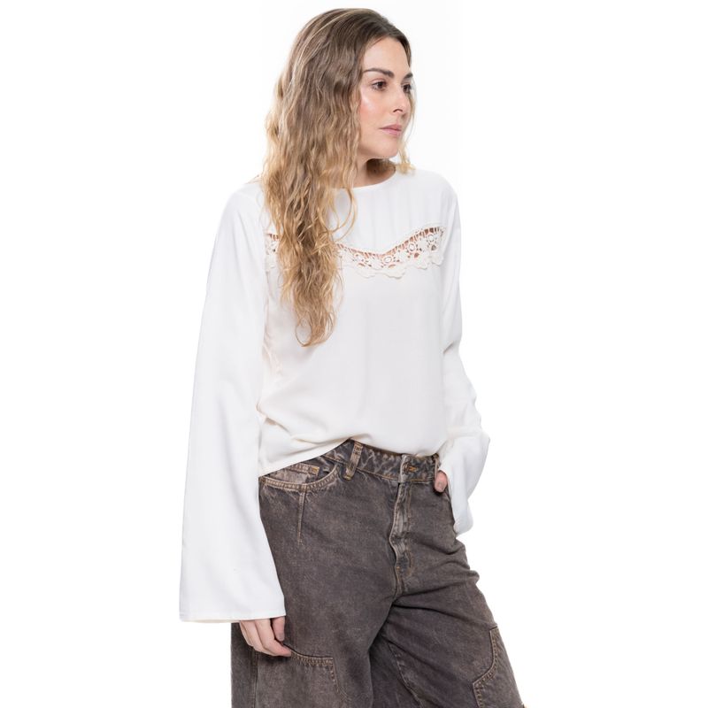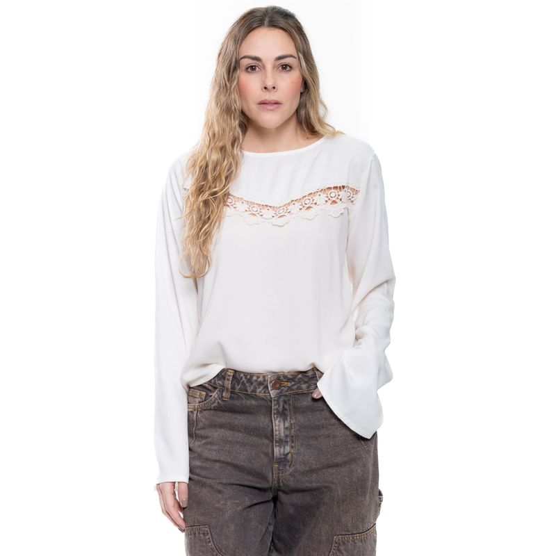 Una prenda que celebra el detalle y la feminidad a través de acabados especiales. Esta camisa de manga larga con encaje y guipur combina transparencias sutiles y texturas definidas para crear un diseño sofisticado y lleno de carácter. El encaje aporta ligereza y un aire romántico, mientras que el guipur suma estructura y protagonismo con sus formas marcadas y acabados artesanales. color blue nace en 1984, fue creada para ser una marca honesta y familiar, la cual se enfocaba principalmente en la producción y exportación de ropa. hoy somos un equipo que trabaja con pasión y hemos cambiado completamente nuestra filosofía. nuestra marca está hecha para ambos géneros con un estilo muy nuestro. somos una empresa colombiana con experiencia en el mercado a través de la comercialización de prendas de vestir.