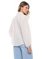Camisa de manga larga confeccionada en tela ojalillo, un material liviano y calado que aporta textura y un aire romántico. Incorpora elásticos en los puños que crean un sutil efecto abombado en las mangas, realzando su silueta femenina. Perfecta para climas cálidos o para dar un toque elegante a looks casuales, combina fácilmente con jeans, faldas o pantalones de lino. Una prenda versátil que une frescura, detalle y estilo artesanal. color blue nace en 1984, fue creada para ser una marca honesta y familiar, la cual se enfocaba principalmente en la producción y exportación de ropa. hoy somos un equipo que trabaja con pasión y hemos cambiado completamente nuestra filosofía. nuestra marca está hecha para ambos géneros con un estilo muy nuestro. somos una empresa colombiana con experiencia en el mercado a través de la comercialización de prendas de vestir.
