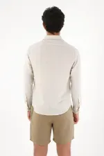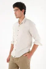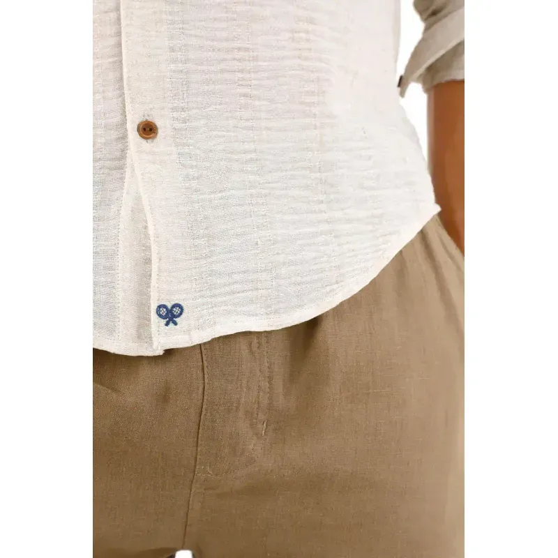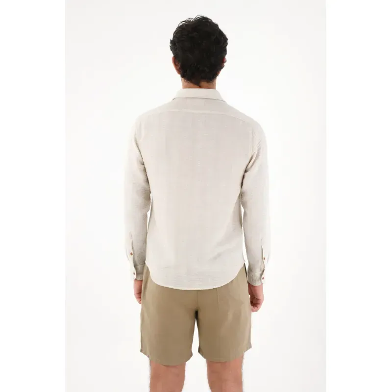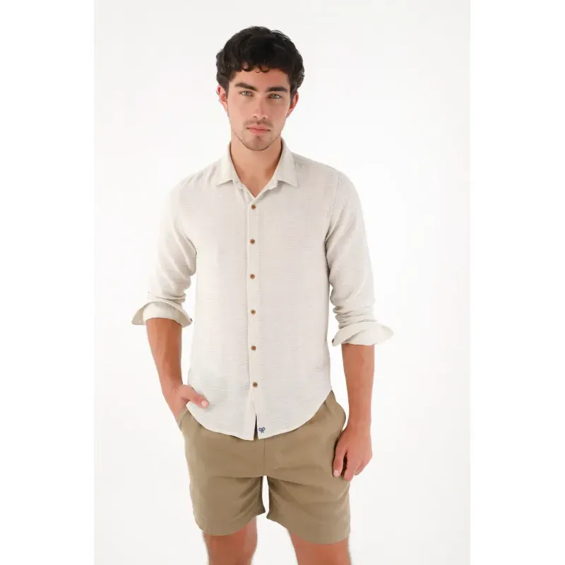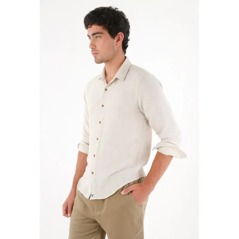 Esta camisa para hombre está diseñada con una silueta tradicional de manga larga que ofrece comodidad y estilo en cada uso. Su cuello clásico y la perilla completa de botones en frente le dan un acabado pulido y versátil, ideal tanto para llevar por dentro como por fuera del pantalón. Los puños con botón aportan estructura, mientras que la icónica raqueta bordada en el ruedo añade un detalle distintivo y sutil, característico del estilo Tennis.