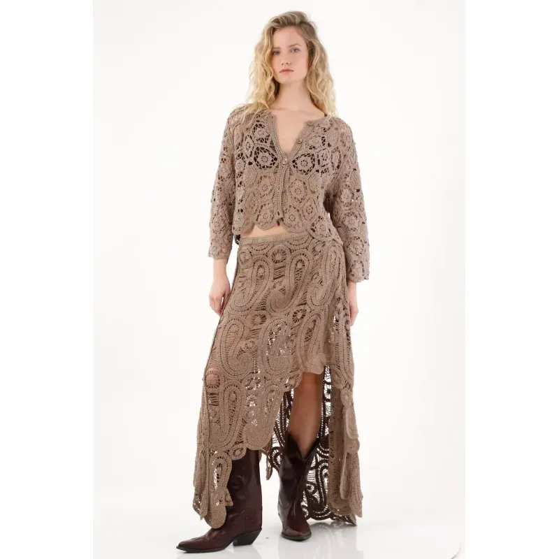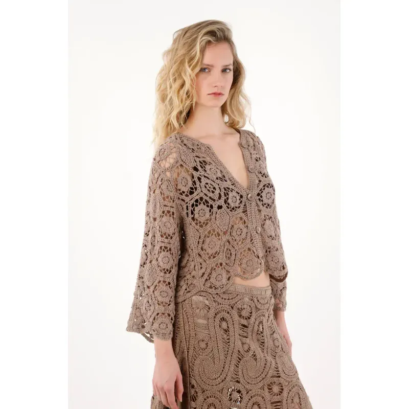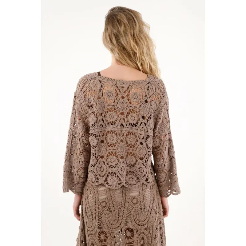 Perfecta para esos días donde el look importa hasta en el más mínimo detalle. Su tejido abierto con diseño de flores le da un aire trendy y femenino, ideal para combinar en set con su falda a juego y lograr un look armonioso y delicado.