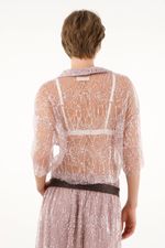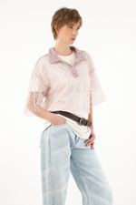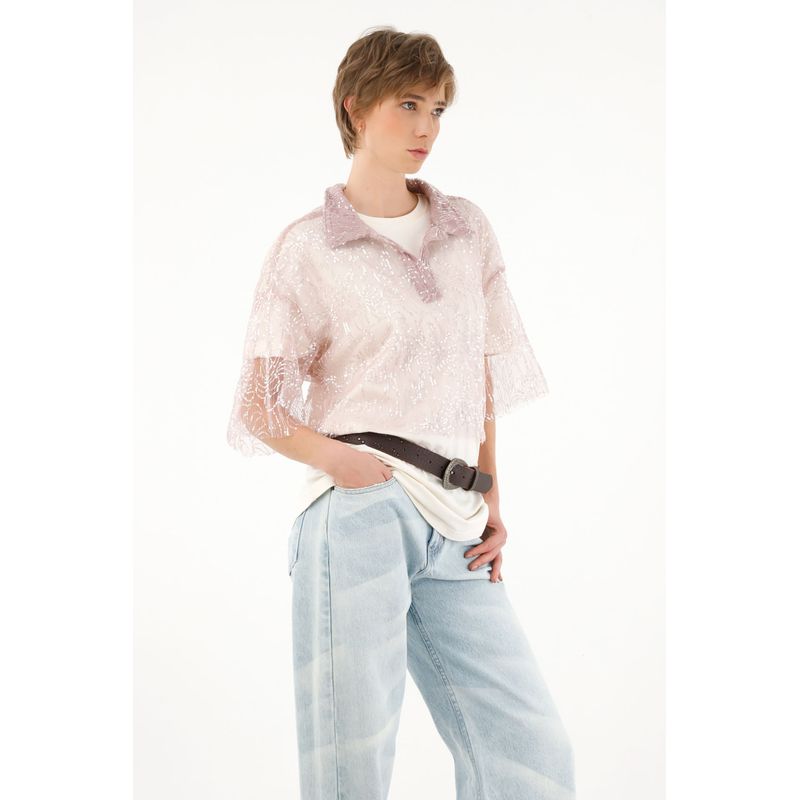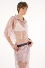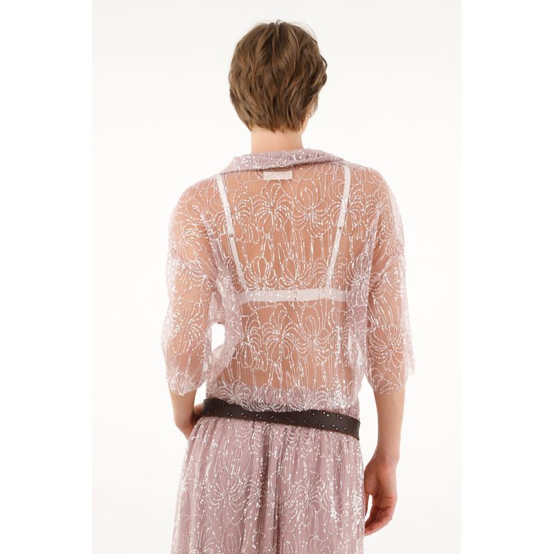 Camisa morada con transparencia y lentejuelas para mujer