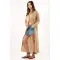 Piensa en un outfit urbano y fresco: llévala semiabotonada sobre un top liso y una falda denim mini. Deja que las aberturas laterales marquen el ritmo y remanga las mangas para equilibrar proporciones; el largo maxi hace el resto con una caída que destaca sin esfuerzo.