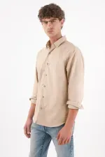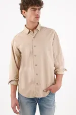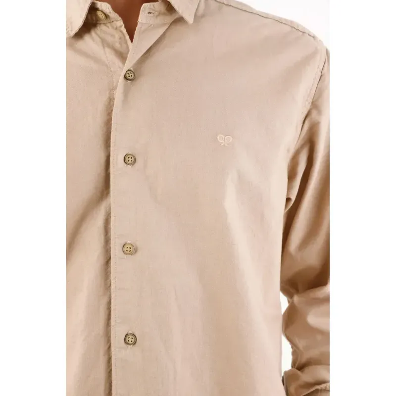 Una camisa de manga larga en color arena que limpia el look y deja hablar a los detalles. El algodón 100% aporta un aspecto natural y fácil de llevar; la botonadura tono a tono mantiene la estética ordenada; el mini logo bordado en el pecho suma identidad sin perder la vibra limpia de TNS. El bajo redondeado y el cuello clásico crean una silueta equilibrada que acompaña tu rutina con estilo casual contemporáneo.