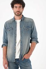 Camisa para hombre de algodón índigo fit relajado lavado vintage