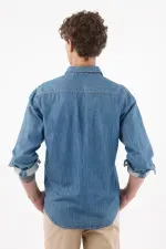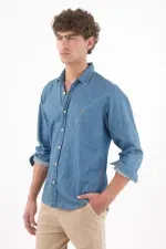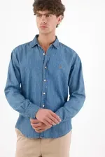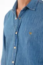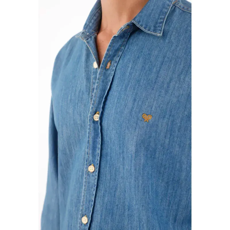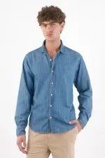 Rayas que estilizan, actitud que se nota. Esta camisa de manga larga suma energía urbana con sus micro rayas azul y blanco que alargan visualmente la figura. El poliéster luce un relieve sutil que aporta textura y un aspecto ligero. Los botones color caramelo añaden un contraste cálido y moderno, mientras el pequeño bordado en el pecho aporta identidad sin exceso. El bajo curvo y el fit relajado permiten llevarla por fuera con caída natural, perfecta para moverse entre la ciudad y planes casuales.
