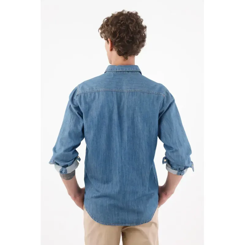 Fit & Styling Llévala en fit relajado, mangas dobladas y el cuello abierto para un aire fresco. Combínala con bermuda blanca o un pantalón chino claro para destacar el azul de esta camisa a rayas hombre y mantener una vibra limpia y contemporánea en manga larga.