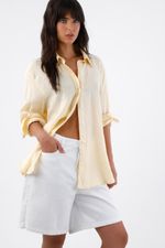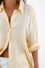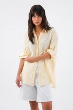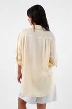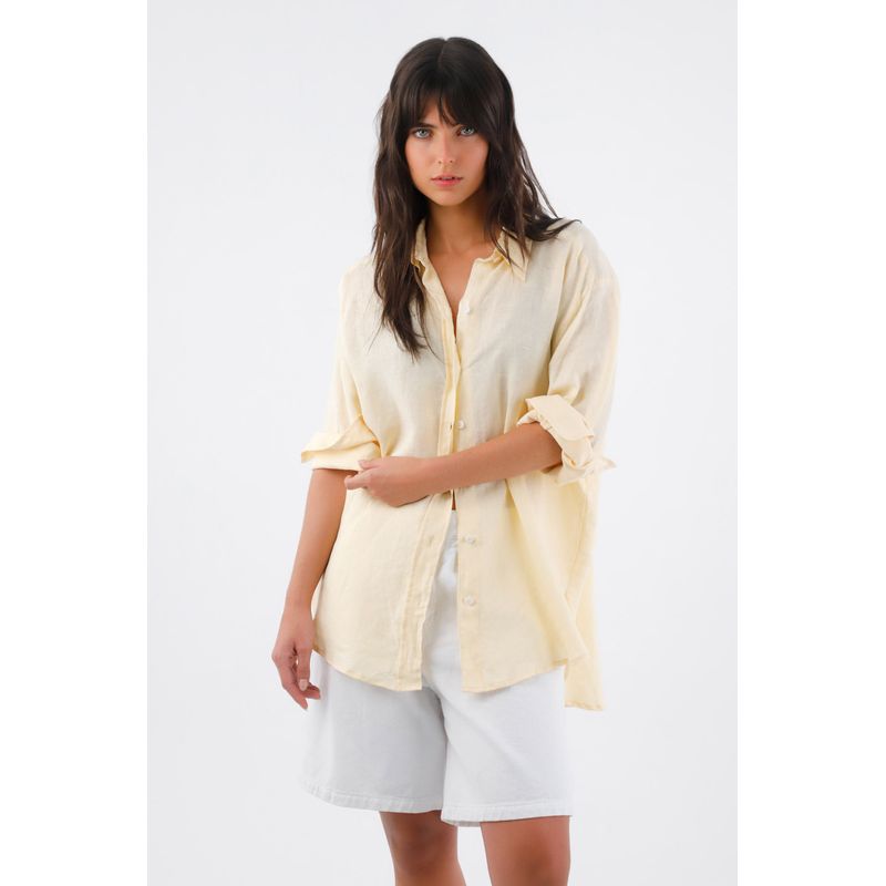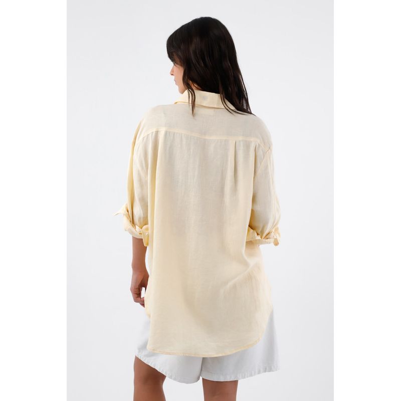 Esta camisa de lino 100% de TNS llega en un amarillo mantequilla que ilumina al instante. La textura natural del lino aporta carácter y frescura visual; el fit oversize con hombros relajados y bajo curvo suma movimiento y un look limpio de vibra urbana. Los botones al tono y las mangas largas arremangadas rematan ese aire espontáneo que funciona del día a la noche sin complicaciones.