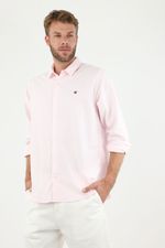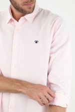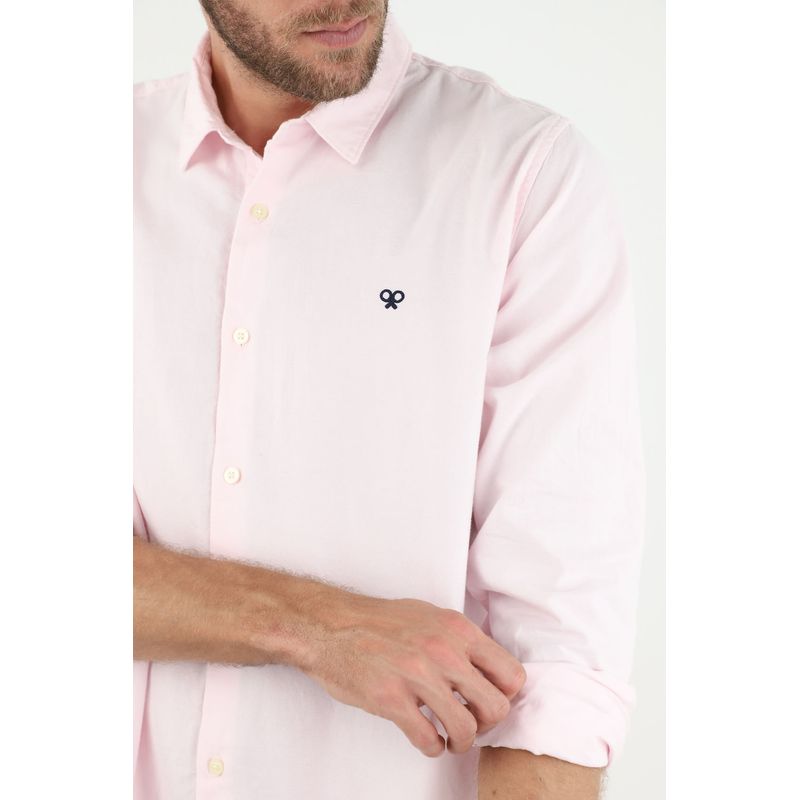 ¡Un color diferente para tus días! De manga larga, cuello francés y bordado en punto corazón, esta camisa rosada te ayudará a crear looks increíbles con el contraste ideal para darle más vida a tus outfits.