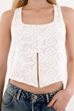 ¡Un must para looks más creativos! Esta camisa tipo chaleco combina detalles únicos, vanguardistas y con inspiración azteca para que tus combinaciones siempre lleven un sello tan original como tú.