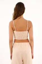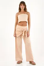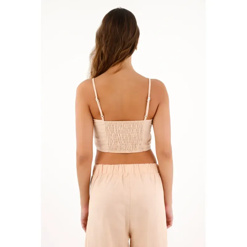 El escote curvo y las cargaderas graduables crean una silueta femenina y adaptable, mientras que la imitación lino lo convierte en el match perfecto para sets monocromáticos o combinaciones effortless-chic.
